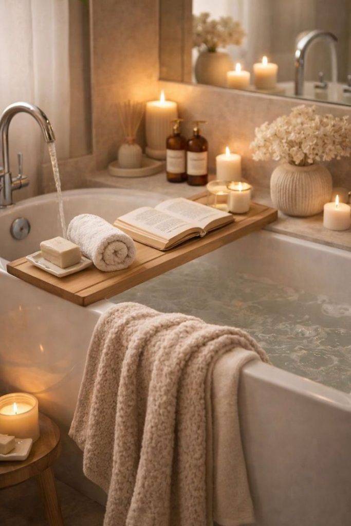 Make time for a slower beauty ritual. Apply a hydrating mask, use a facial oil, or try a gentle massage. It’s less about the product and more about giving yourself time to pause.