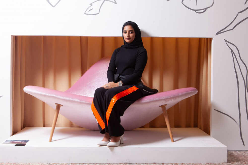 Alia Mazrooei is an Emirati interior and product designer who graduated from Zayed University with a Bachelor of Fine Arts in Interior Design in 2017,  but she was already exhibiting before her degree was complete. Her early work included a VIP majlis for the Mirbad Ramadan Souq in Abu Dhabi, where she reimagined traditional Arabian design through a contemporary lens, setting arabesque patterns inside a minimalist frame paired with suede, leather, and linen cushions.  The piece went on to be rented for events and generated custom orders. Her dedication to the making process is a defining characteristic — she taught herself carpentry, laser cutting, welding, and embroidery at a fabrication studio, believing that understanding how furniture is physically built produces better design.  At Dubai Design Week 2018, she debuted Thuluth, a conceptual majlis commissioned by 1971 Design Space, its forms drawn from the desert landscape.  Selected by Dubai Design District to join the UAE Design Stories exhibition, she took her work to Milan, London, and Paris  — one of a generation of Emirati designers making the case for a homegrown design language. More recently, she has been working on a project that brings together French café culture and the majlis setting.