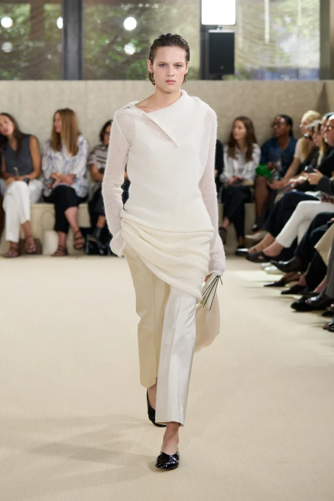 New York-based Khaite, launched by Catherine Holstein in 2016, occupies a distinctive space in the minimalist landscape: sensual rather than severe, feminine without being decorative. Holstein builds collections around the tension between structure and softness, producing knitwear, denim, and tailoring that feel at once effortless and deliberate. The brand’s cashmere pieces, in particular, have developed a following for their weight and drape, and its boots and bags have crossed into the kind of quiet-luxury lexicon usually populated by far older houses. Khaite is minimalism with warmth in it, which is perhaps why it has resonated so broadly with women who want to feel like themselves, only better.