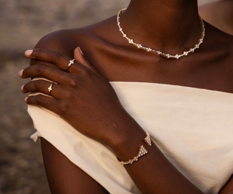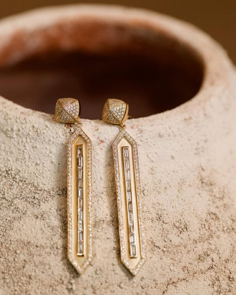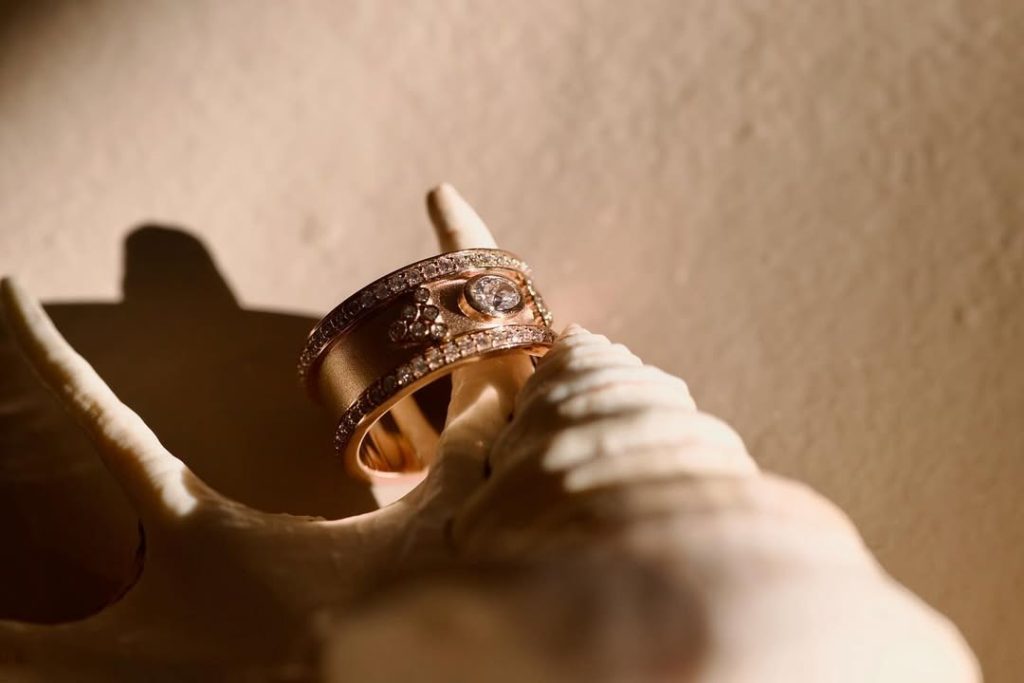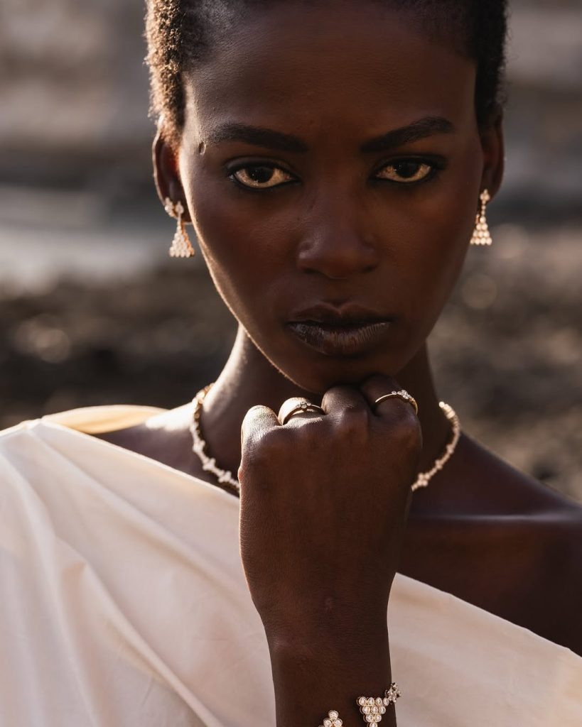 This narrative instinct is reinforced by a design philosophy that prioritises research and immersion. Every piece begins with travel, observation, and the gathering of symbols across geographies. These references are distilled into modern forms that retain the emotional weight of their origins. The result is jewellery that feels considered without being literal, where heritage is not preserved as relic but reimagined as something living.