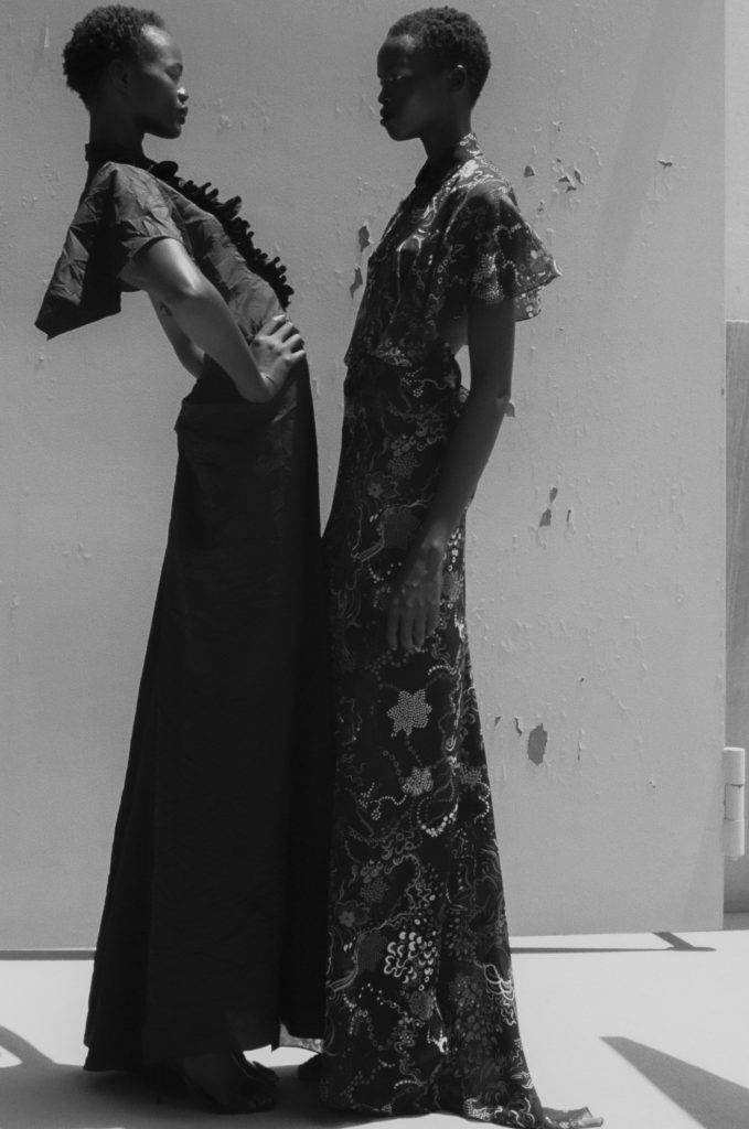 There is also a thoughtful approach to proportion. Longer hems trail slightly behind the body, adding a sense of ease and elegance, while capes are layered over silhouettes to create movement and depth. Nothing feels overworked; instead, the focus stays on shape and fabric.