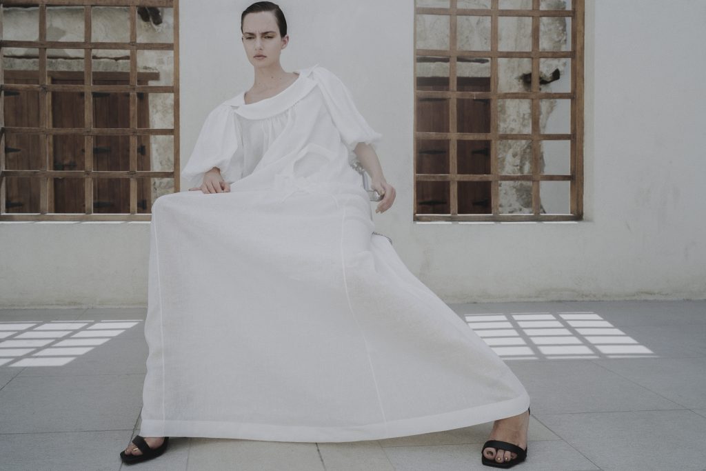 The collection was photographed in Bahrain along the Pearling Path, inside a restored 1930s merchant’s house. The setting, where old stone meets more modern elements, reflects the spirit of the collection itself, grounded in heritage but shaped for the present.