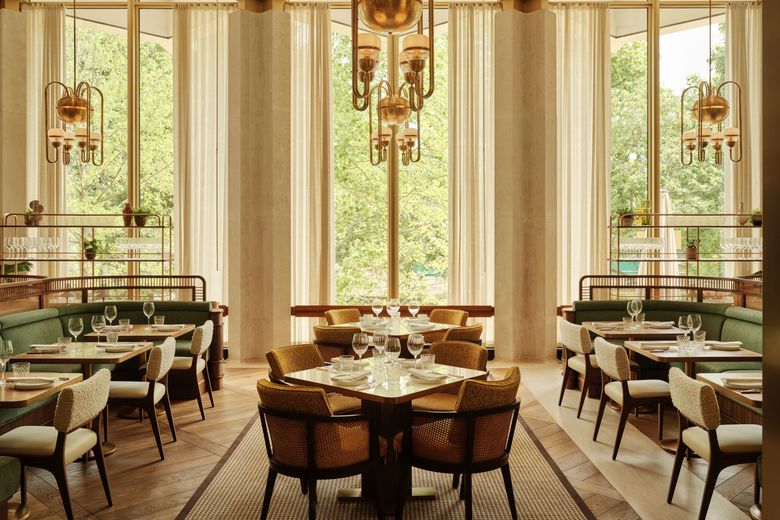 The hotel offers 144 suites, all designed by Parisian architect Joseph Dirand, ranging from junior suites to two-bedroom penthouses with landscaped terraces. In a nod to the building’s diplomatic past, the rooms are named after American figures such as Kennedy, Saarinen and John Adams. The suites are notably spacious with a residential feel. Many layouts include grand foyers and gallery-style corridors reminiscent of a British manor house, finished with Savile Row fabrics, Alcantara-clad walls and rich timber detailing.