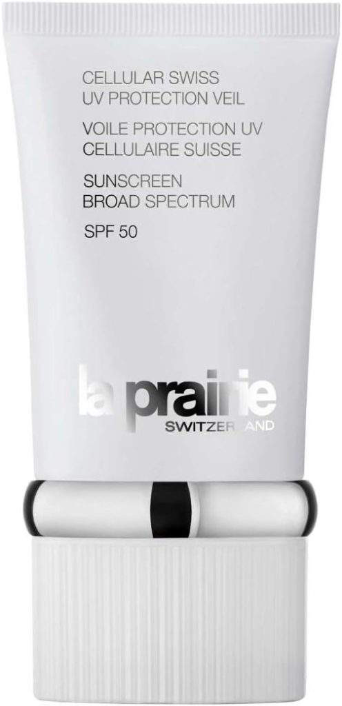 A refined option is La Prairie Cellular Swiss UV Protection Veil SPF 50, a lightweight sunscreen designed to protect while maintaining skin luminosity.